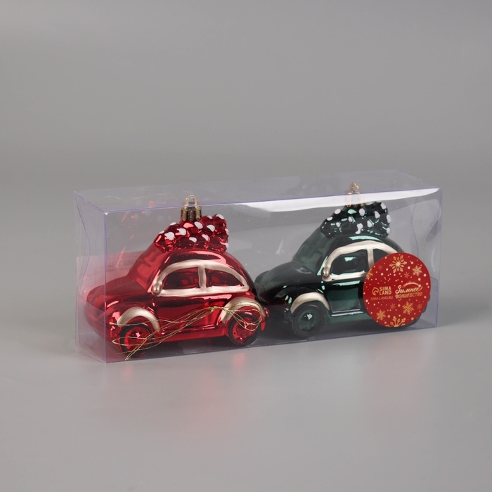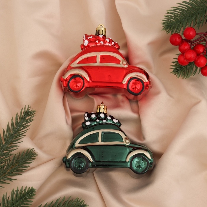 Украшение ёлочное "Машинка колор" (набор 2 шт) 9х5х7 см, зелёный красный