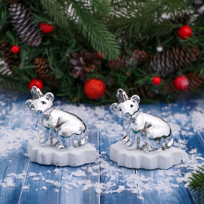 Украшение ёлочное "Мишутка на льдине" (набор 2 шт) 5,5х7,5х8 см, серебро