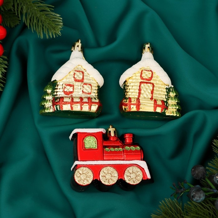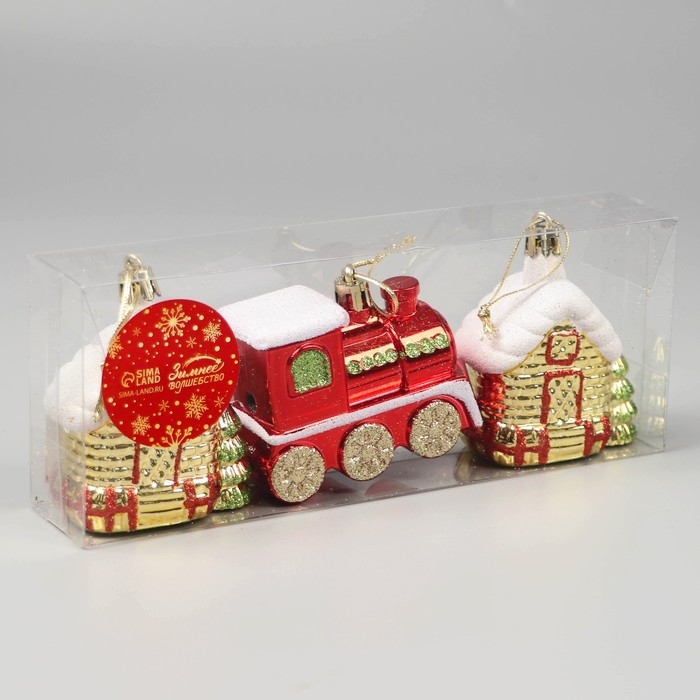 Украшение ёлочное "Новогоднее ассорти" (набор 3 шт) красный золото