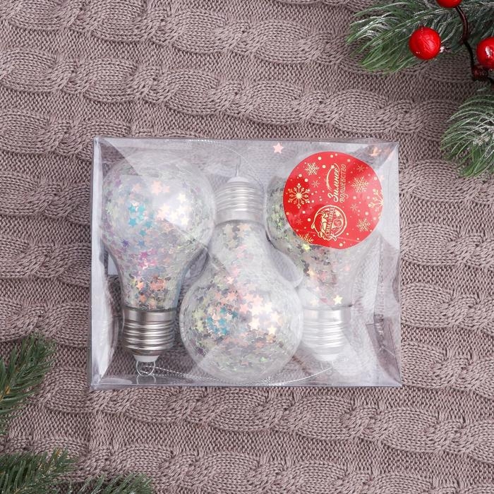 Украшение ёлочное "Новогодние фантазии" (набор 3 шт) лампочки, 6х7 см, прозрачный