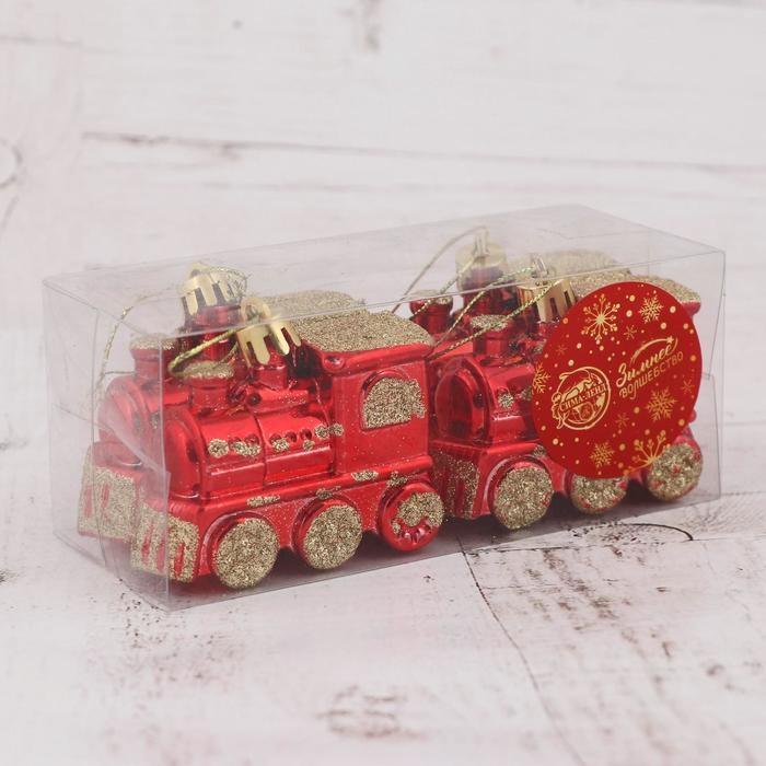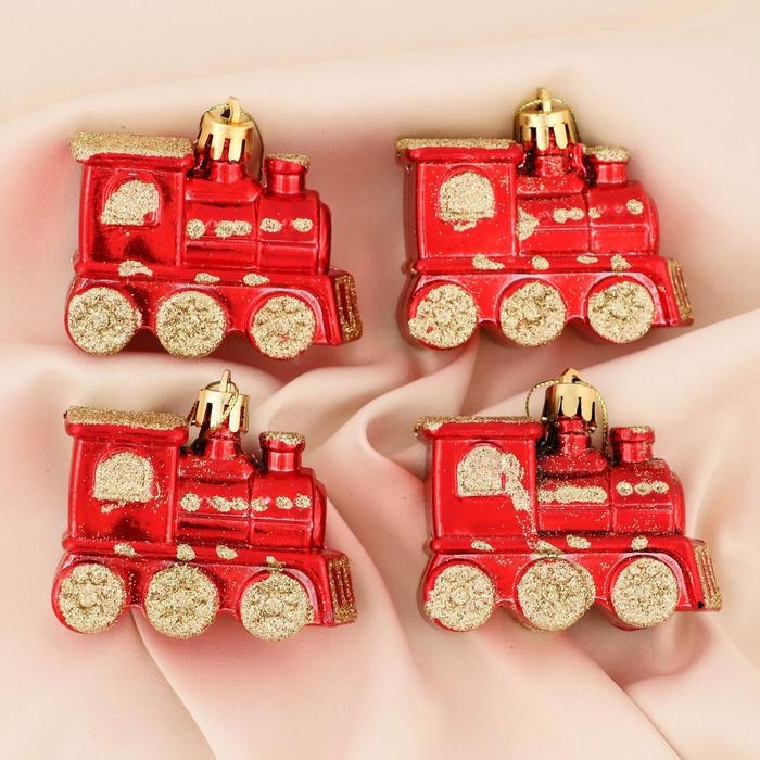 Украшение ёлочное "Паровозик" (набор 4 шт) 6,5х4,5 см, красно-золотой
