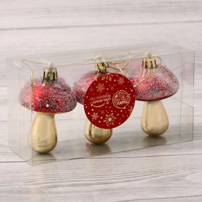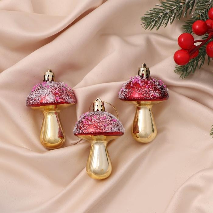 Украшение ёлочное "Праздничные грибочки" (набор 3 шт) 4,5х6 см, золотисто-красный