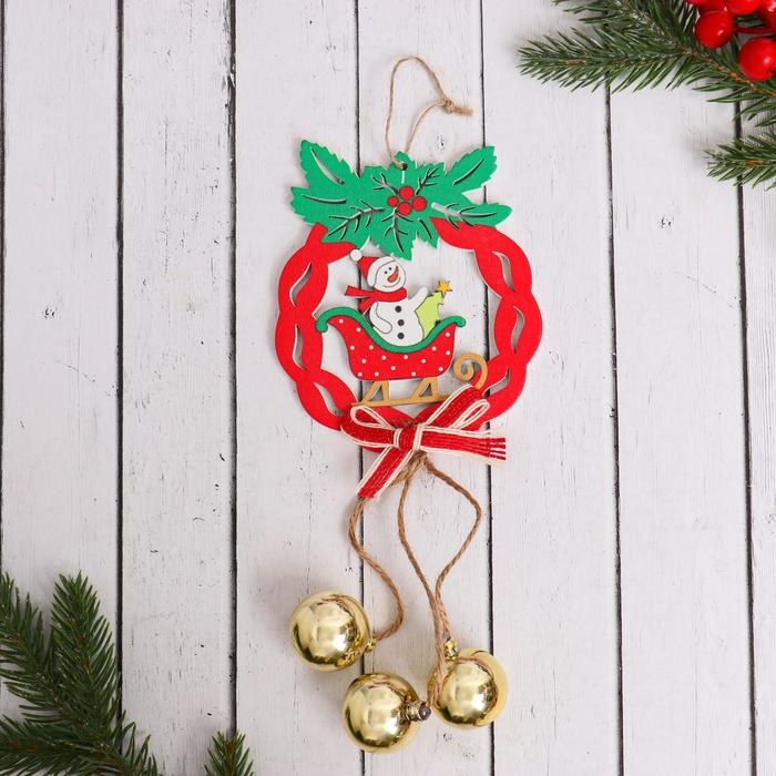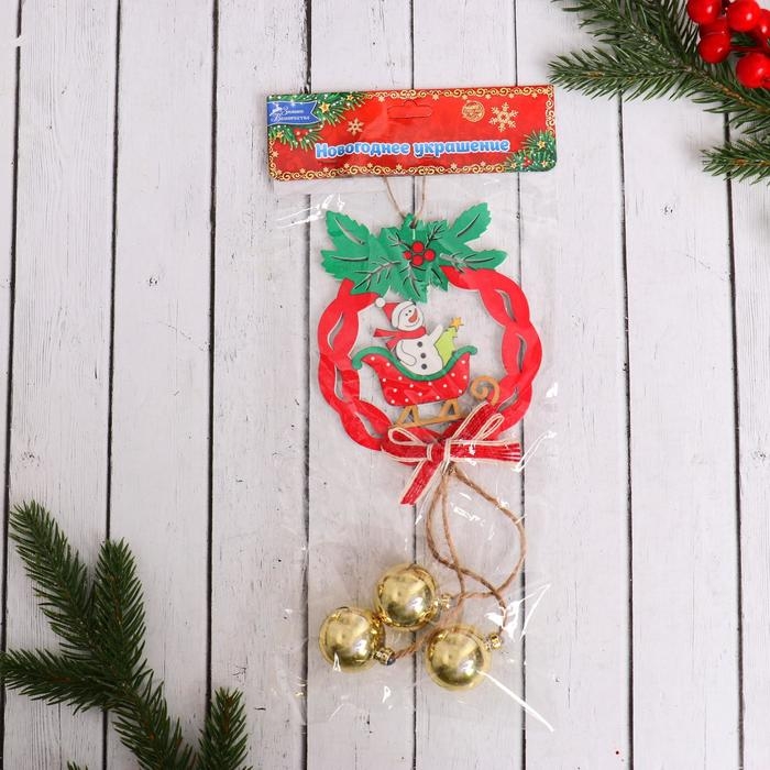 Украшение ёлочное "Рождественский венок с шариками" снеговик в санках 10х23 см