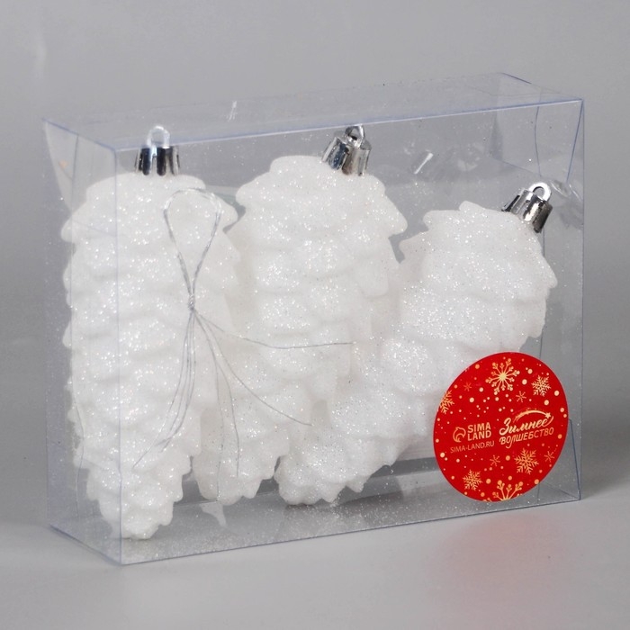 Украшение ёлочное "Шишка" (набор 3 шт) 12х4,5 см, белый