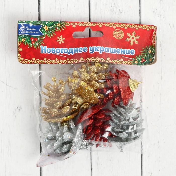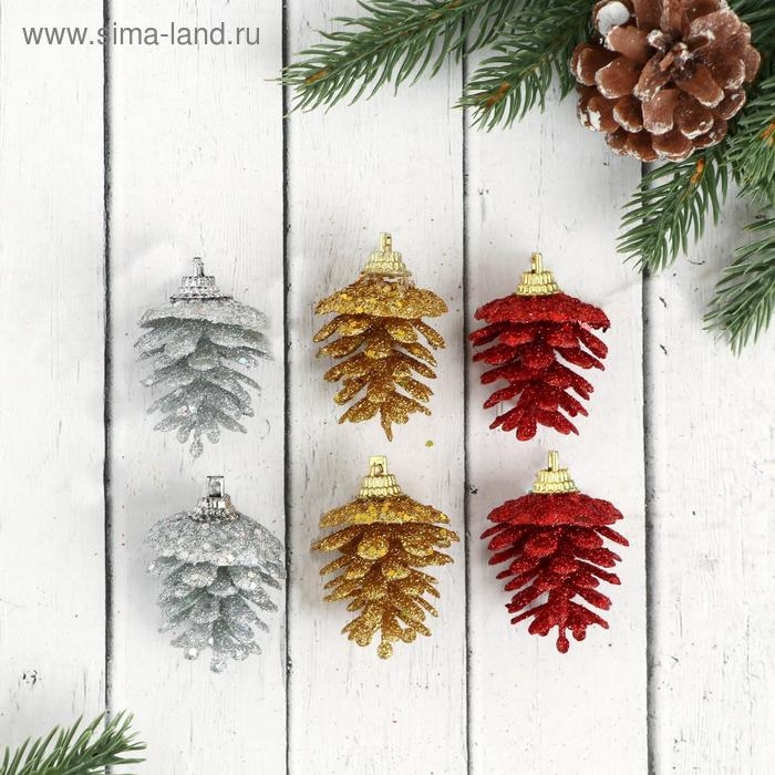 Украшение ёлочное "Шишка с мерцанием" (набор 6 шт) 3х5 см, микс