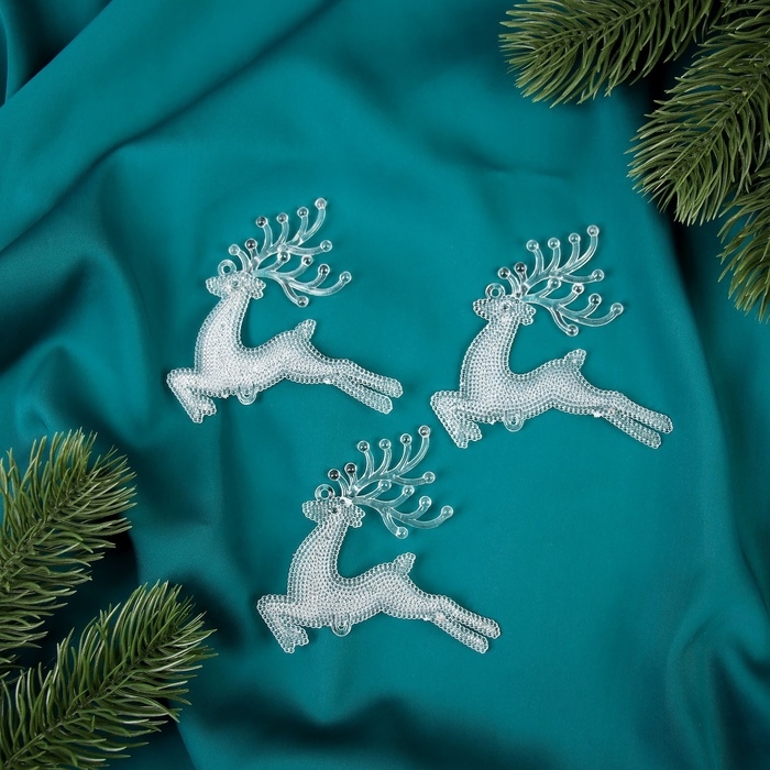 Украшение ёлочное "Скачущий олень с текстурой" (набор 3 шт) 7х7 см, прозрачный