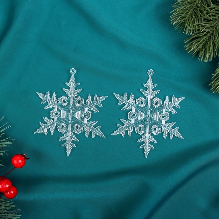 Украшение ёлочное "Снежинка резная сияние" (набор 2 шт) 9,5х8 см, прозрачный