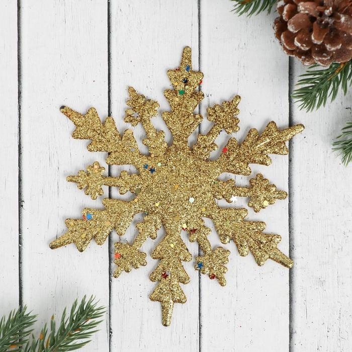 Украшение ёлочное "Снежинка - яркое сияние" (набор 2 шт) 14 см, золото серебро
