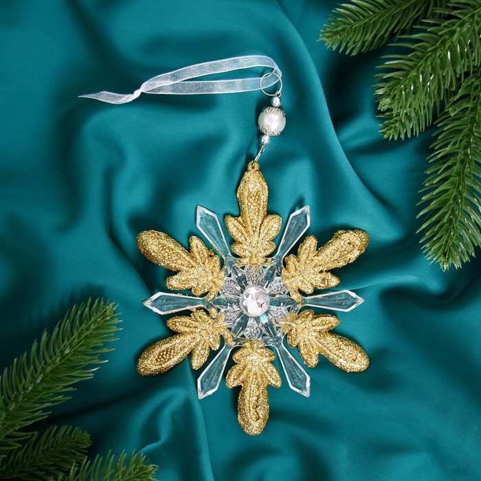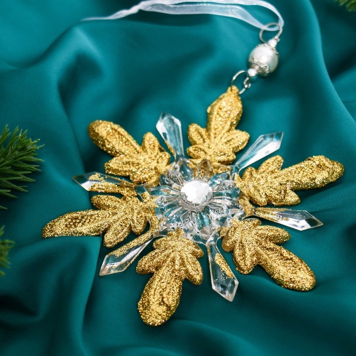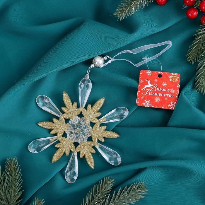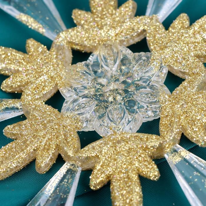 Украшение ёлочное "Снежинки лучистые блеск" 14х14 см, микс, прозрачно-золотой