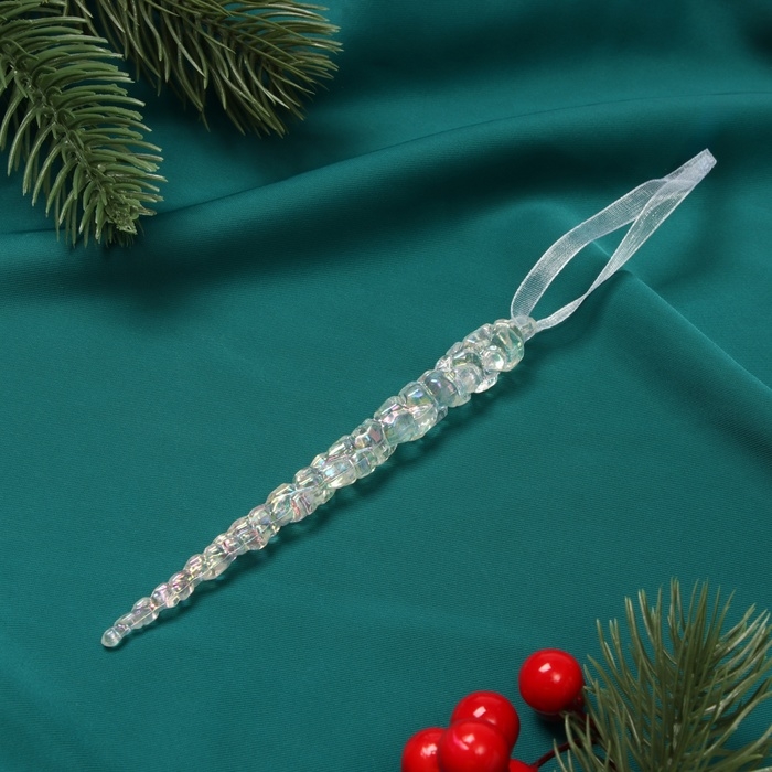 Украшение ёлочное "Сосулька" 14,5х1 см, прозрачный перелив