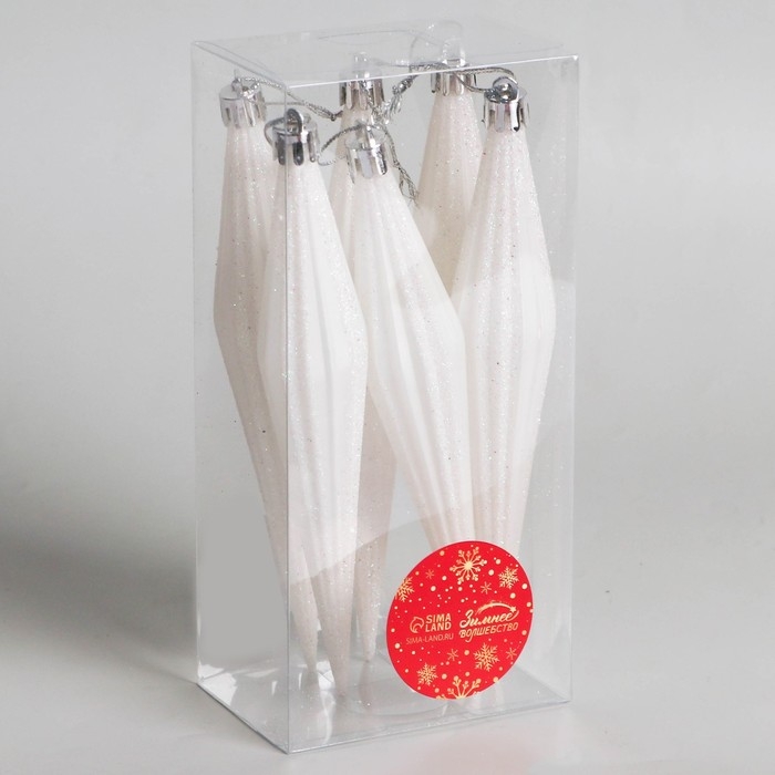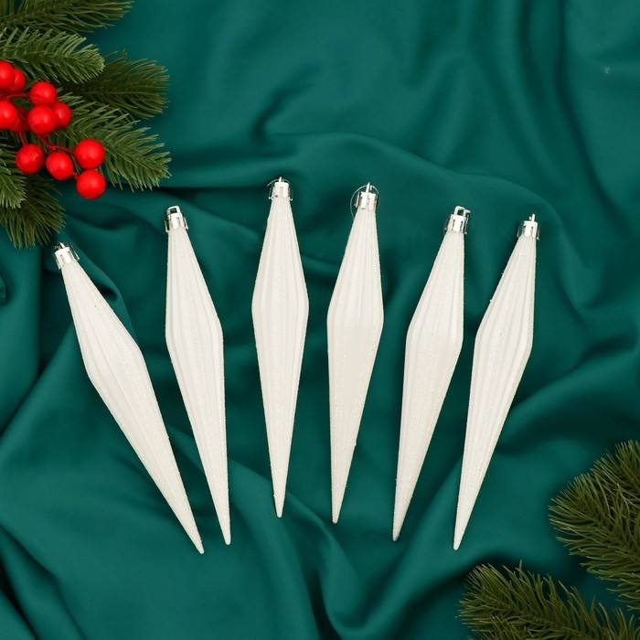 Украшение ёлочное "Сосулька острая в полоску" (набор 6 шт) 3х18 см, белый