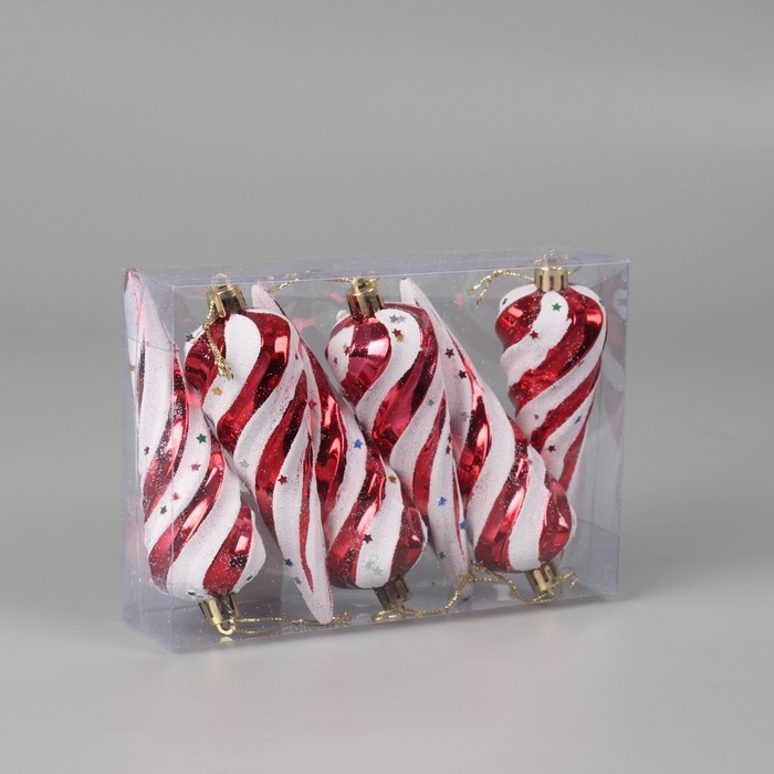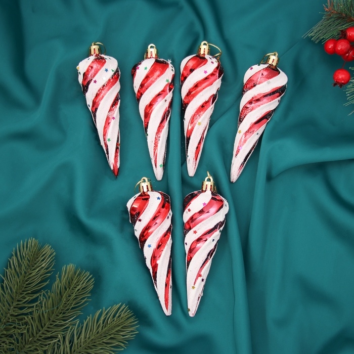 Украшение ёлочное "Сосулька полосатая витая" (набор 6 шт) 12х4 см, красно-белый