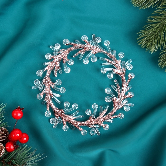 Украшение ёлочное "Венок сияние" 14х14 см, прозрачно-розовый