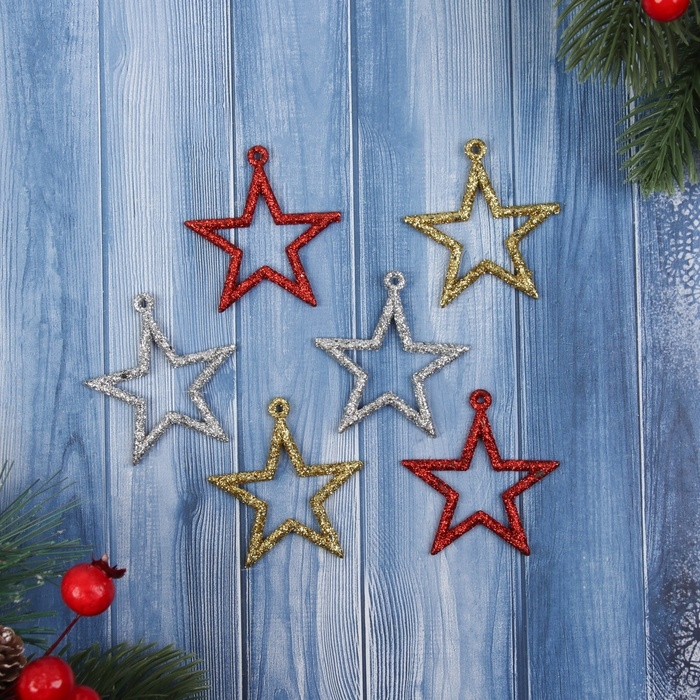 Украшение ёлочное "Звезда блеск грация" (набор 6 шт) 5х4,5 см, микс