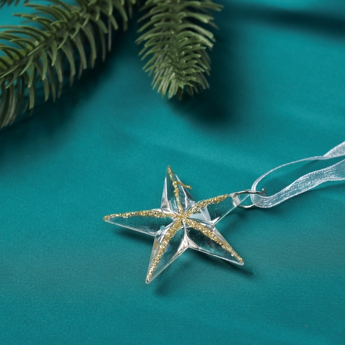 Украшение ёлочное "Звезда" (набор 3 шт) 5х5 см, прозрачный с золотом