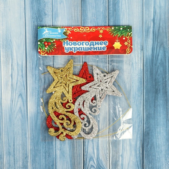 Украшение ёлочное "Звёздочка с дымкой" (набор 3 шт) 4х10 см, микс