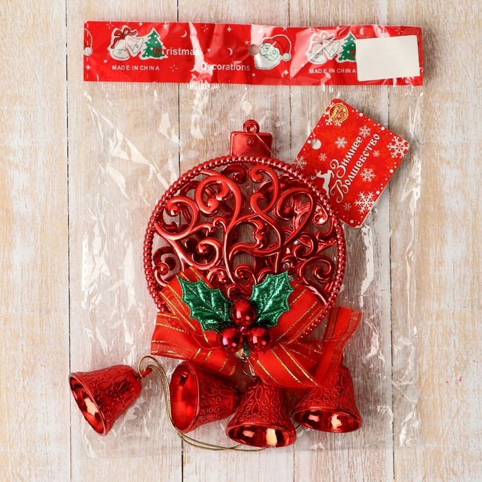 Украшение новогоднее "Уютная сказка" колокольчики узорный шар, 10х27 см, красный