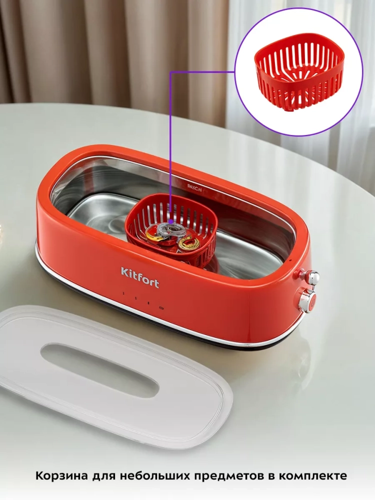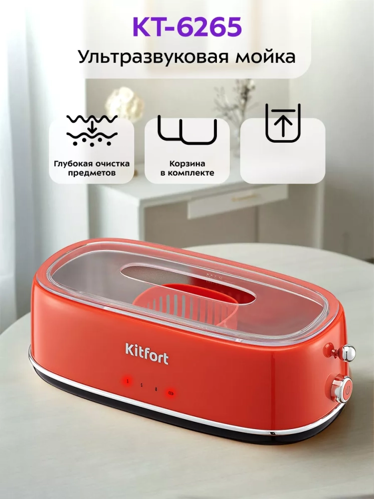 Ультразвуковая мойка Kitfort КТ-6265 поможет эффективно очистить и продезинфицировать небольшие изделия из металла, пластика и стекла. Ультразвуковая очистка — способ очистки поверхности твёрдых тел в жидкости, при котором в жидкость вводятся ультразвуковые колебания. Применение ультразвука обычно значительно ускоряет процесс очистки и повышает его качество. В качестве жидкости в ультразвуковой мойке можно использовать воду, а также чистящие или дезинфицирующие растворы.