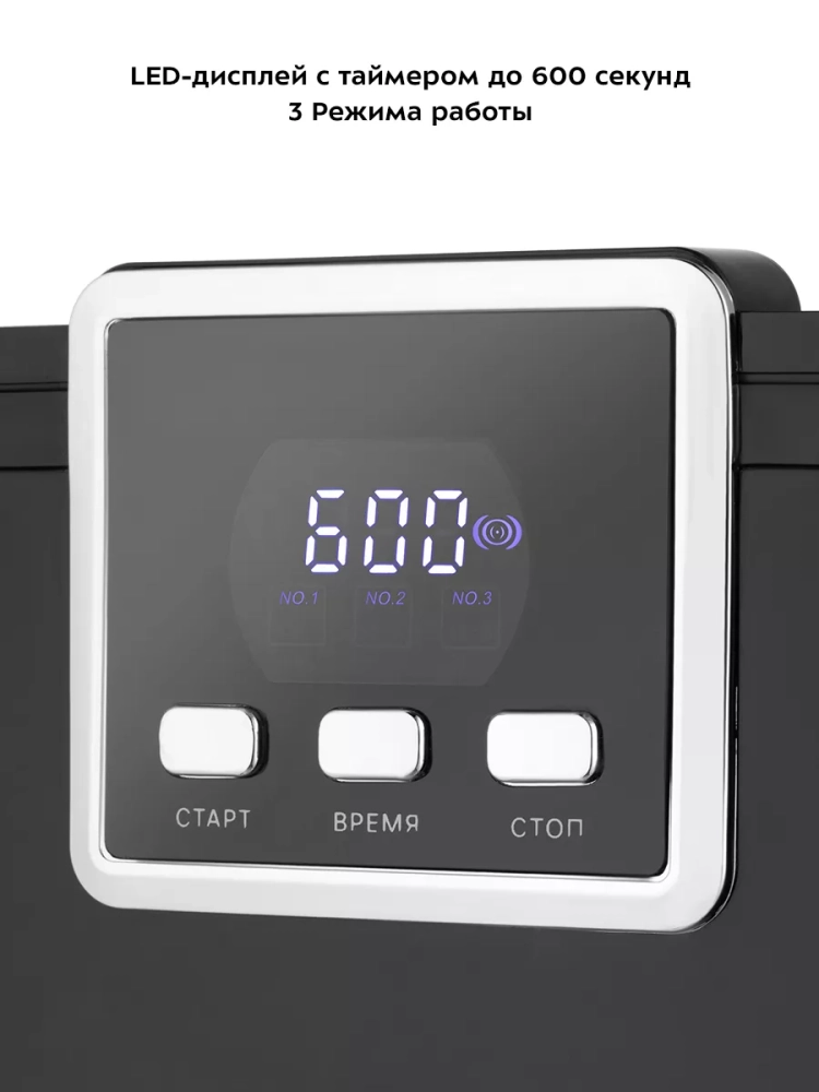 Управление прибором осуществляется при помощи кнопок на панели управления. Вы можете выбрать время работы 90, 180, 300, 480 или 600 секунд, после которого мойка автоматически отключается. Во время работы на дисплее отображается оставшееся время работы.
