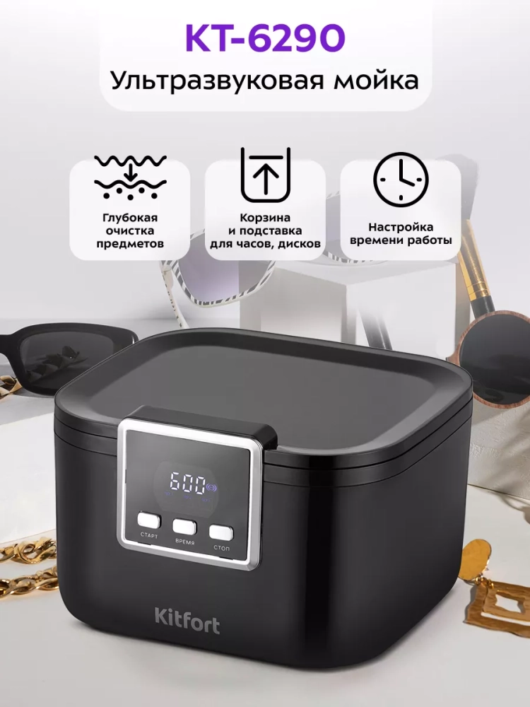 Ультразвуковая мойка Kitfort КТ-6290 поможет эффективно очистить и продезинфицировать небольшие изделия из металла, пластика и стекла. Ультразвуковая очистка — способ очистки поверхности твёрдых тел в жидкости, при котором в жидкость вводятся ультразвуковые колебания. Применение ультразвука значительно ускоряет процесс очистки и повышает качество очистки. В качестве жидкости в ультразвуковой мойке можно использовать воду, а также чистящие или дезинфицирующие растворы.