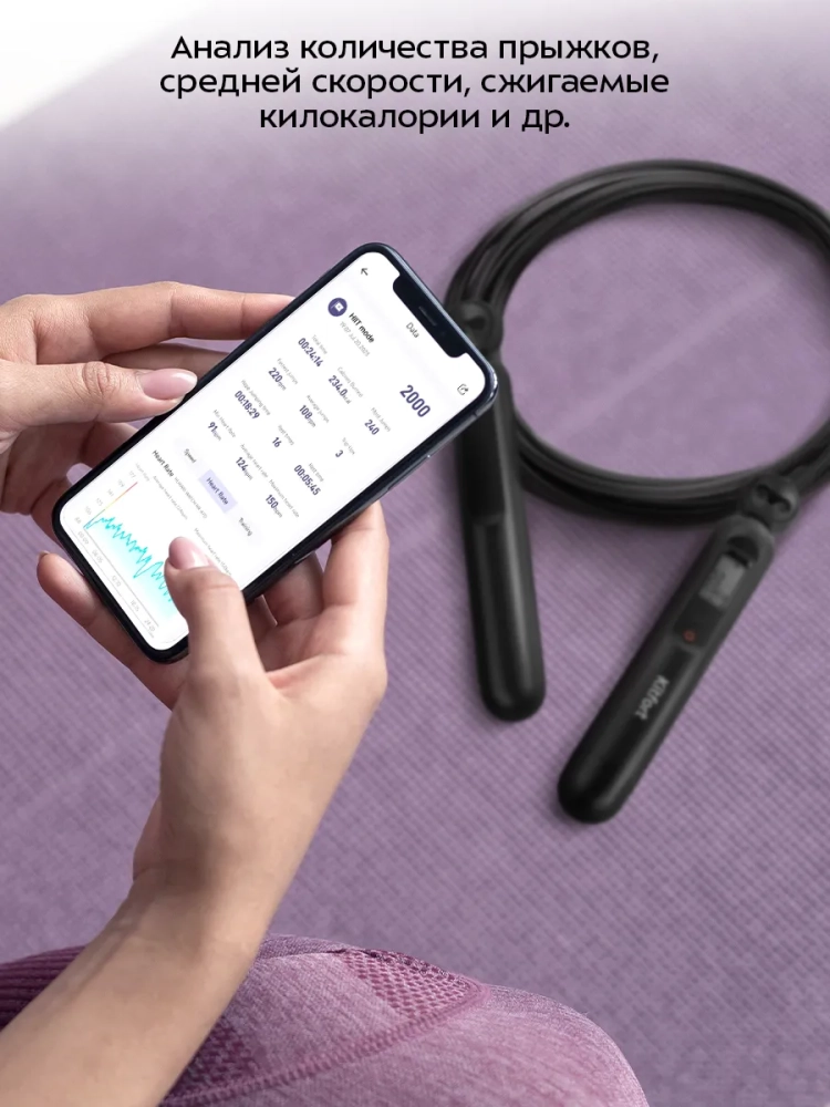 Скакалка КТ-6388 представляет современное поколение «умных» гаджетов для спорта, поскольку ее можно подключить к приложению Skipjoy, включив передачу данных через Bluetooth. Приложение выводит на экран телефона разные параметры: количество прыжков, среднюю скорость прыжков, количество сжигаемых килокалорий и т.д. Главное достоинство электронной скакалки состоит в том, что она повышает мотивацию к занятиям. В приложении на смартфоне будет представлен анализ тренировки, прогресс и советы.