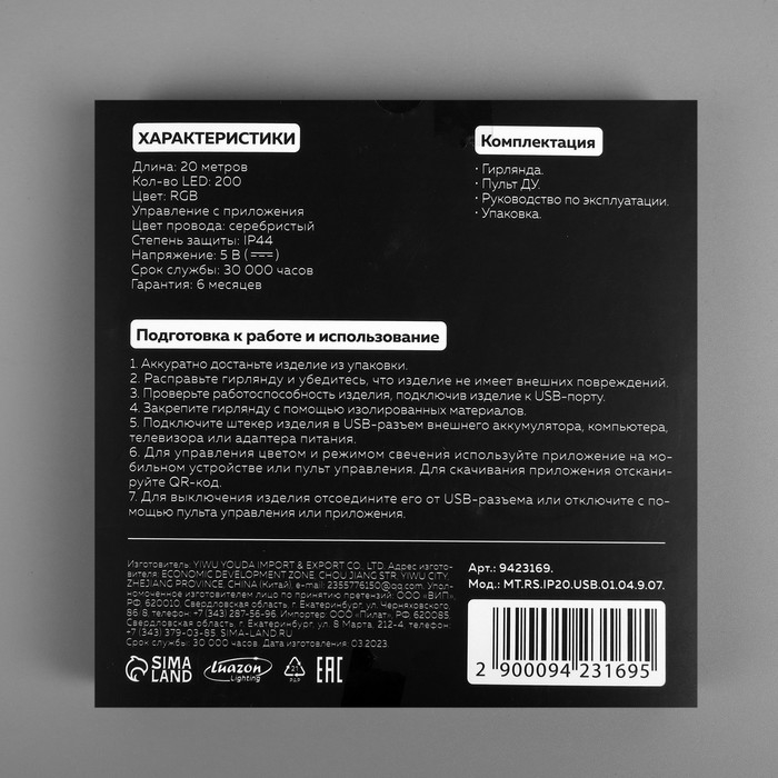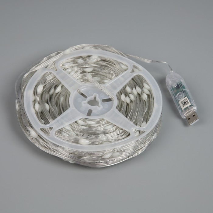 Умная гирлянда «Нить» 20 м роса, IP44, серебристая нить, 200 LED, управление с приложения, свечение RGB, USB