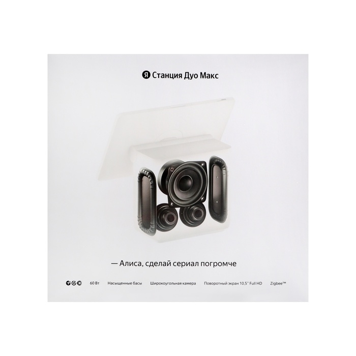 Акустическая система с 4 широкополосными динамиками и сабвуфером мощностью 60 Вт воспроизводит сбалансированный звук. Яндекс.Станция Дуо Макс YNDX-00055BLK поддерживает беспроводные технологии Wi-Fi, Zigbee и Bluetooth.