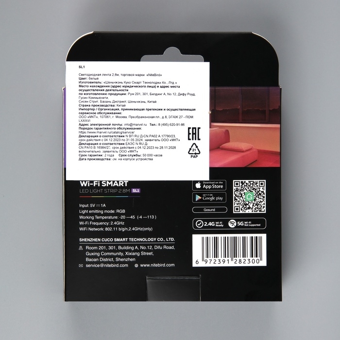 Умная светодиодная лента Nitebird, 5В, SMD5050, 30 LED/м, 2.8 м, IP20, Wi-Fi, RGB