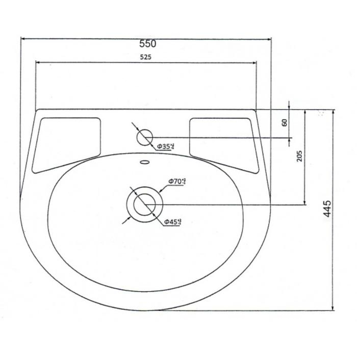 Умывальник ЛЗСФ "Антей", ширина 550 мм, с переливом, с отверстием под смеситель