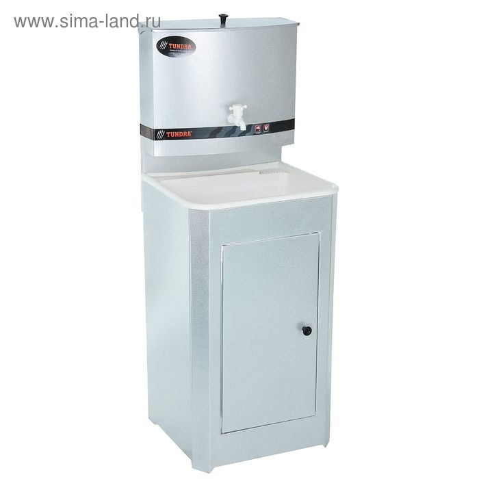 Умывальник TUNDRA — отличное приобретение для дачи, гаража, мастерской или других мест без центрального водоснабжения. Металлическая конструкция цвета белого золота проста в эксплуатации и уходе, обладает высокой износоустойчивостью. Раковина выполнена из пластика, а на бак для воды нанесено невосприимчивое к коррозии запатентованное покрытие.