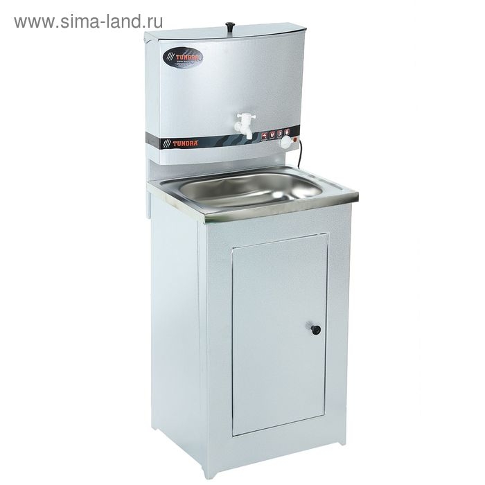 Умывальник TUNDRA — отличное приобретение для дачи, гаража, мастерской или других мест без центрального водоснабжения. Металлическая конструкция цвета белого золота проста в эксплуатации и уходе, обладает высокой износоустойчивостью. Раковина выполнена из нержавеющей стали, а на бак для воды нанесено запатентованное невосприимчивое к коррозии покрытие. Огромное преимущество — наличие встроенного водонагревателя, который будет особенно актуален в прохладную погоду.