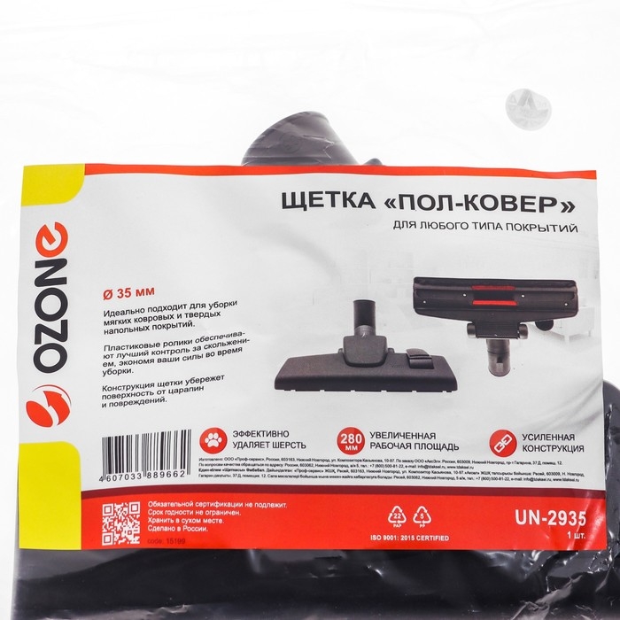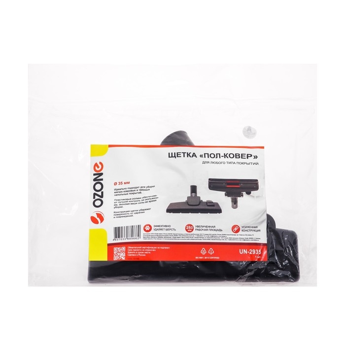 Щетка для пылесоса "Пол-ковер" Ozone, шириной 255 мм, под трубку 35 мм представляет собой универсальное приспособление для качественной и быстрой уборки помещений. Этот аксессуар предназначен для использования с пылесосами различного типа и мощности, позволяя эффективно очищать различные типы поверхностей, включая твердые полы и ковровые покрытия.