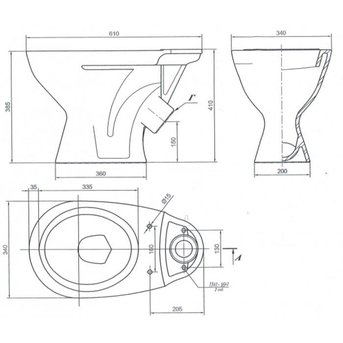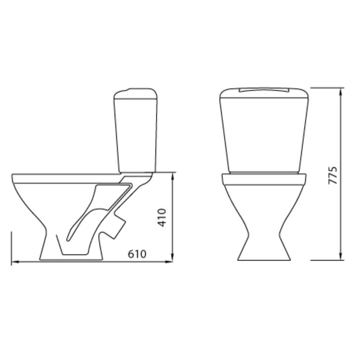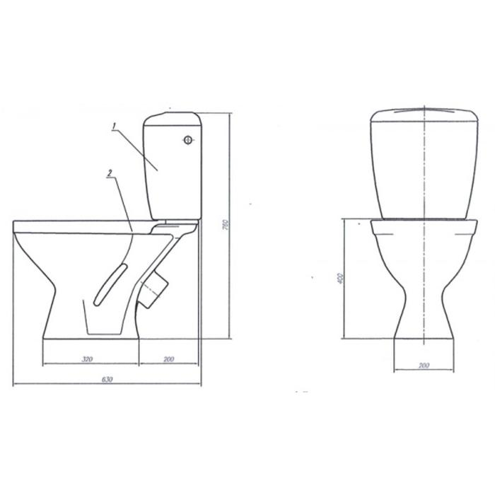 Унитаз компакт ЛЗСФ "Универсал NEW 45", нижняя подводка, косой выпуск, сиденье, кнопка