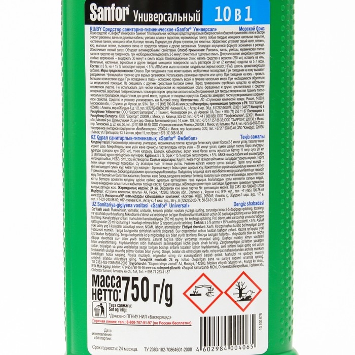 Положительные отзывы пользователей о средстве Санфор универсал 10 в 1 указывают не только на его качество и удобство в использовании, но и на экономичный расход. Одной емкости хватает на срок до 2-3 недель.