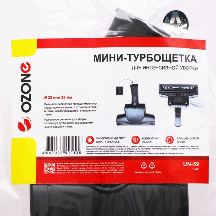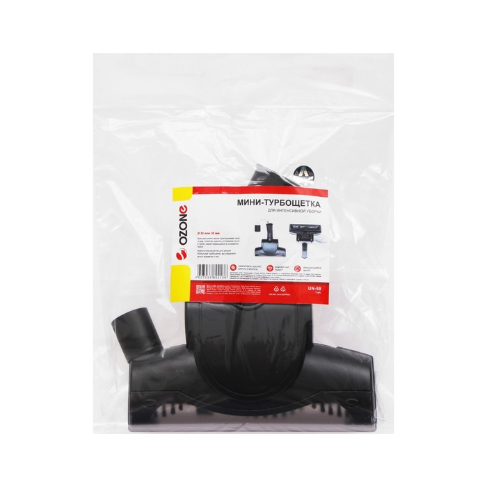 Мини-турбощетка Ozone совместима с трубками диаметром 32 и 35 мм, что делает ее универсальной и подходящей для большинства моделей пылесосов различных брендов.