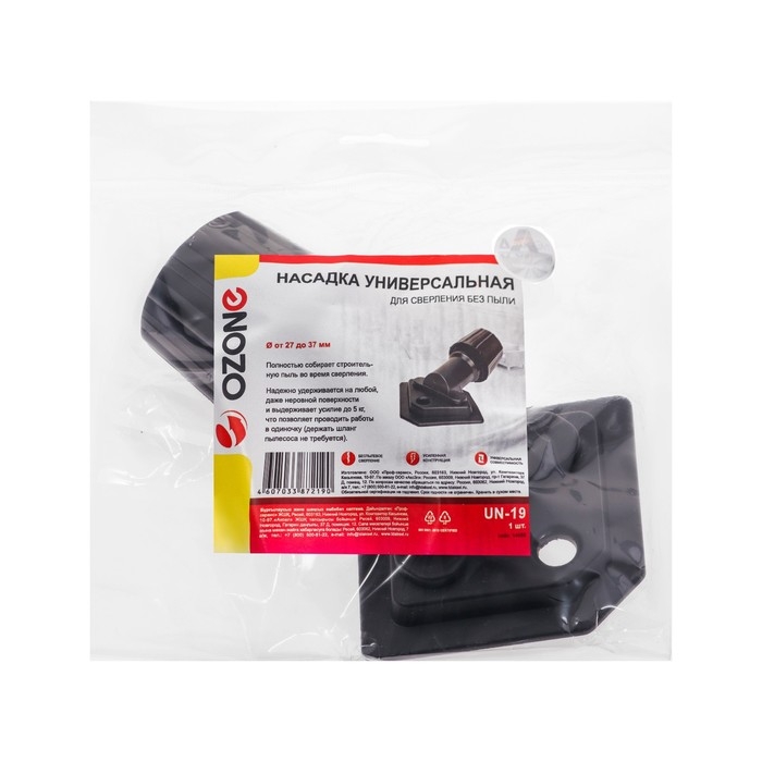 Универсальная насадка для пылесоса UN-19 Ozone - это инновационное решение для сверления без пыли. Она подходит для использования с трубками диаметром от 27 до 37 мм.