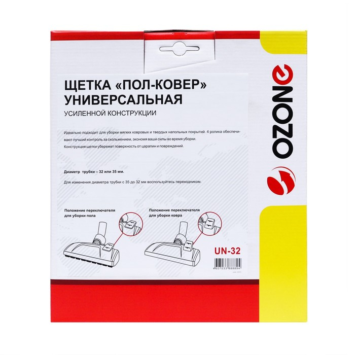 Универсальная щетка для пылесоса "Пол-ковер" Ozone усиленной конструкции - это надежный и эффективный аксессуар для уборки различных типов поверхностей. Она оснащена усиленной конструкцией, что обеспечивает ее прочность и долговечность.