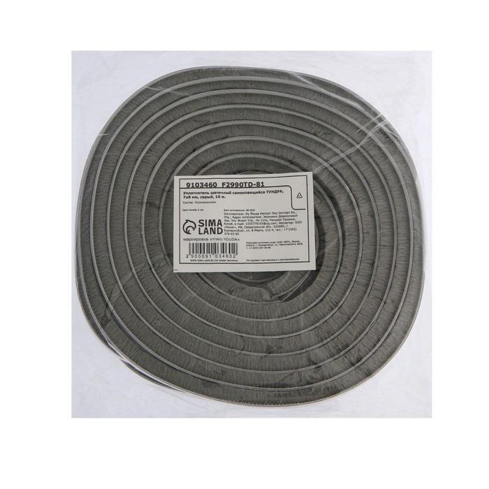 Уплотнитель щеточный самоклеящийся ТУНДРА, 7х8 мм, серый, 10 м.