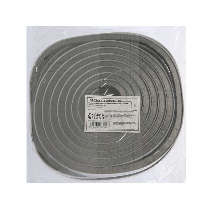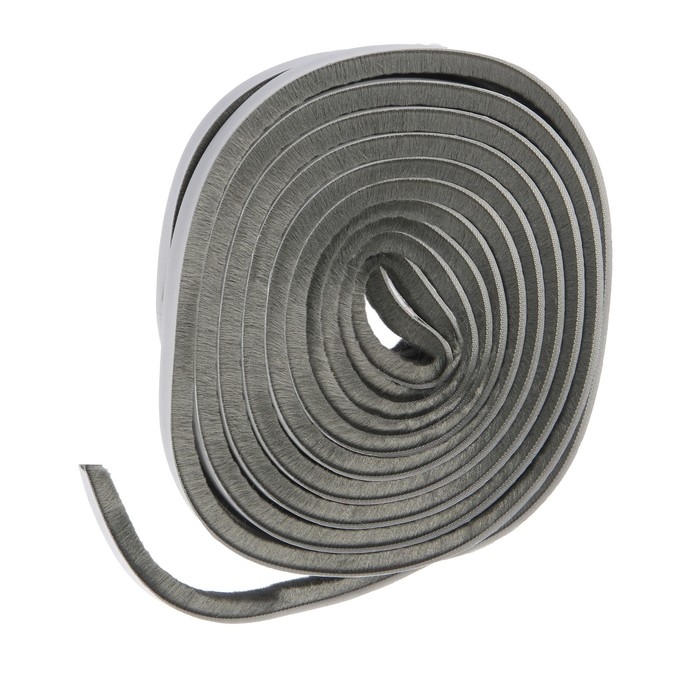 Уплотнитель щеточный самоклеящийся ТУНДРА, 9х9 мм, серый, 10 м.