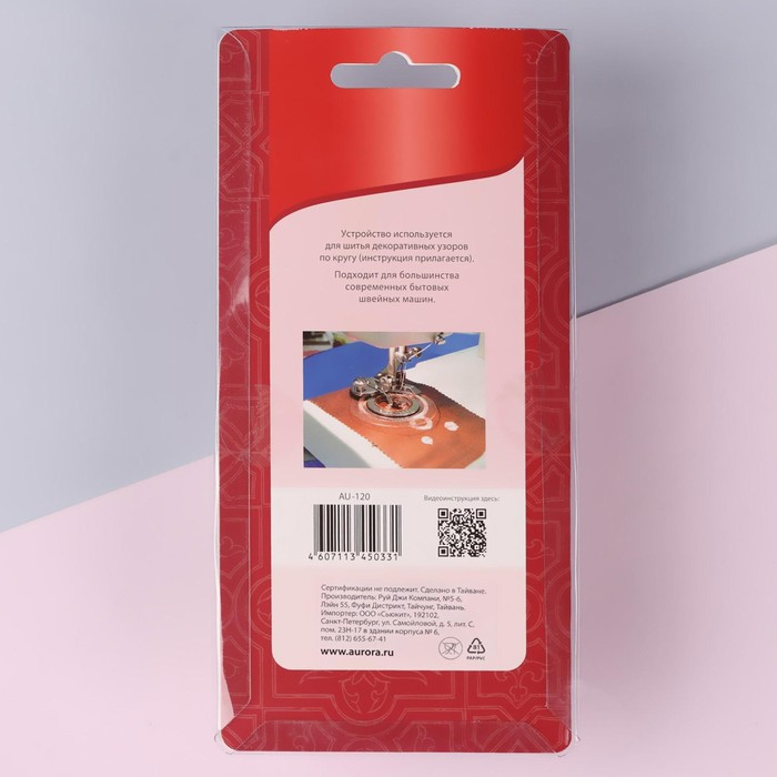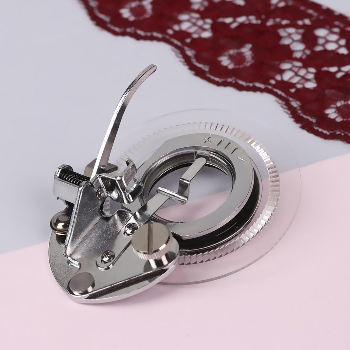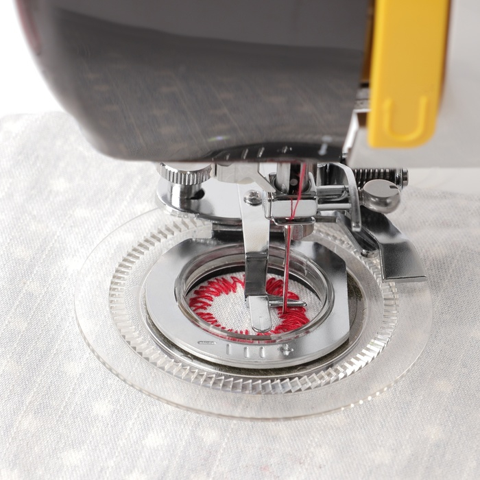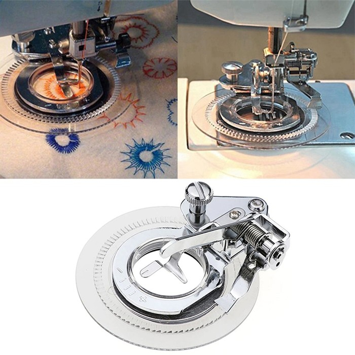 Устройство для шитья предназначено для круговых узоров на основе строчек зиг-заг и трикотажный зиг-заг. За счёт комбинирования строчек и возможности изменения диаметра узоров - можно добиться различных вариантов дизайна.