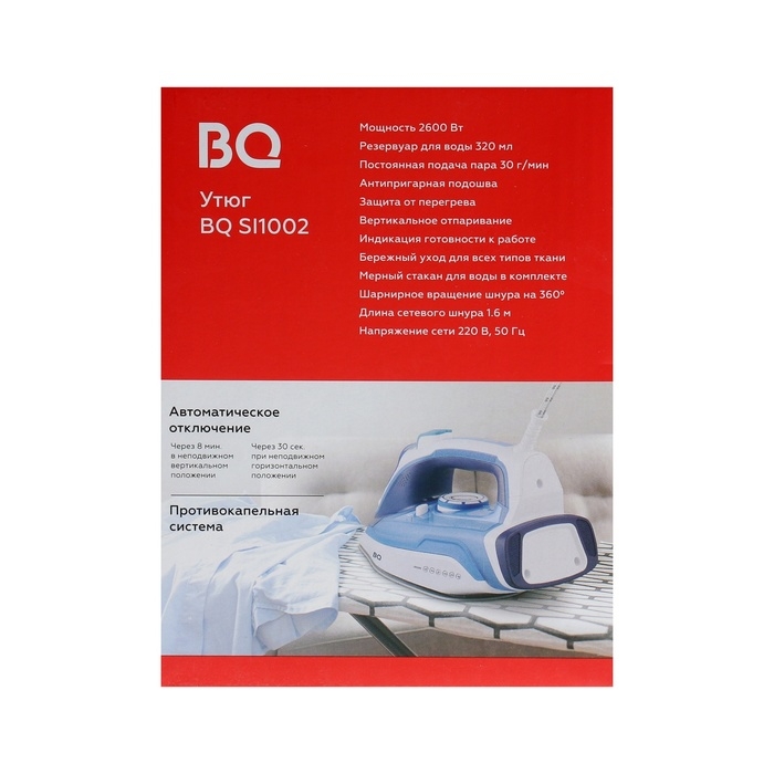 Утюг BQ SI1002, 2600 Вт, керамическая подошва, 30 г/мин, 320 мл, бело-фиолетовый