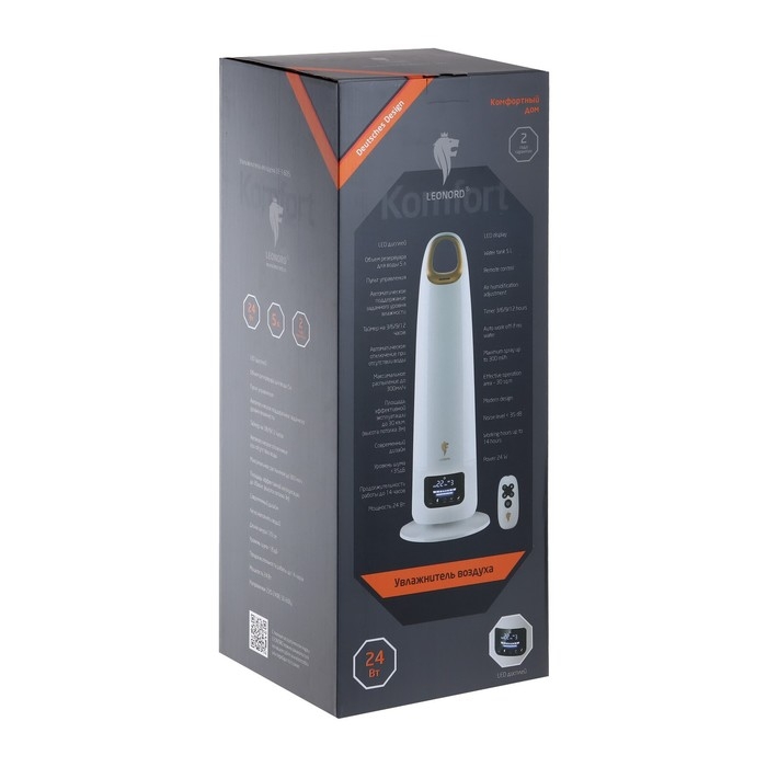 Увлажнитель Leonord LE-1605, ультразвуковой, 24 Вт, 5 л, до 30 м2, белый