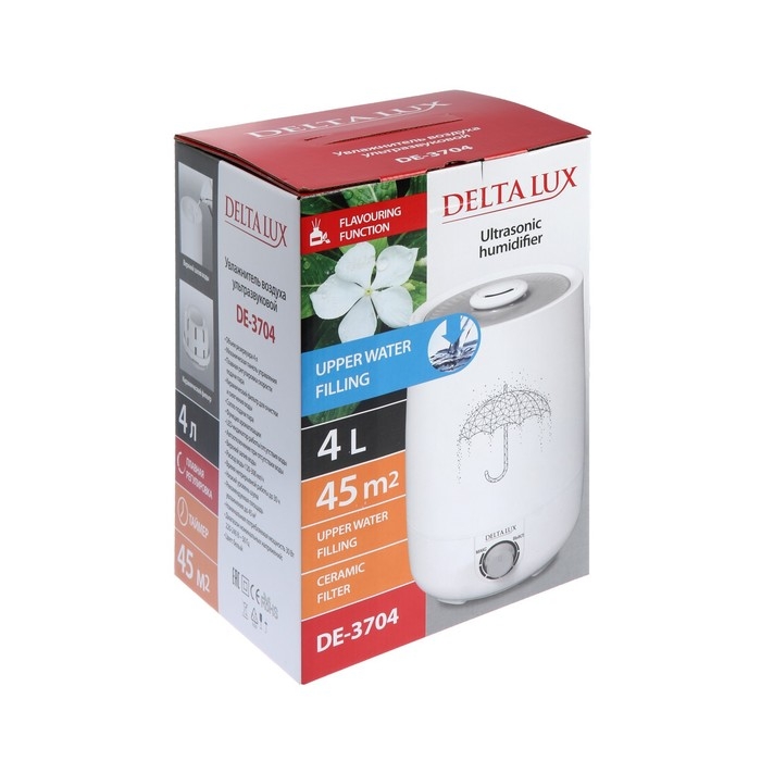 Увлажнитель воздуха DELTA LUX DE-3704, ультразвуковой, 30 Вт, 4 л, до 45 м2, арома, белый