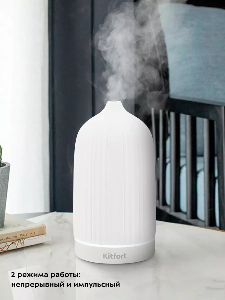 Увлажнитель-ароматизатор воздуха Kitfort КТ-2893 — компактный прибор, который создаст благоприятный микроклимат рядом с вами. Добавьте в резервуар для воды несколько капель эфирного масла, чтобы во время работы увлажнителя ароматическое вещество испарялось и вместе с туманом выдувалось наружу потоком воздуха, создавая вокруг приятный и ненавязчивый аромат. Устройство будет увлажнять воздух вокруг области его размещения, поэтому можно комфортно находиться на рабочем месте, крепко спать или заниматься любыми другими делами, пока рядом с вами находится увлажнитель воздуха.
