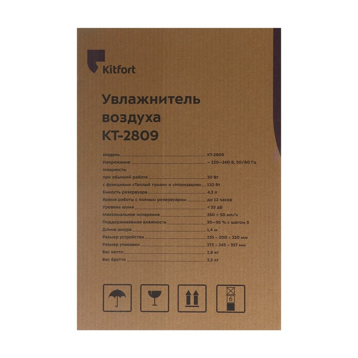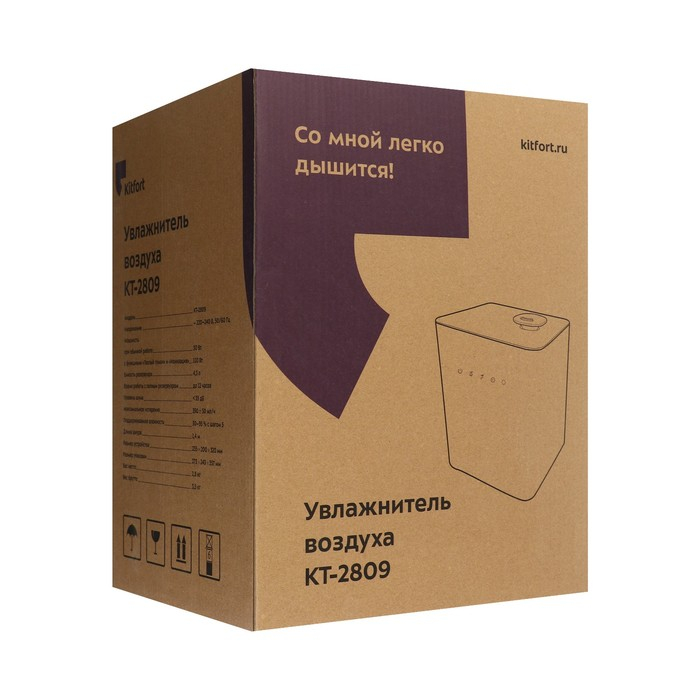 Kitfort KT-2809 увлажняет воздух в помещении и ионизирует его, создавая хороший микроклимат. С помощью кнопок на передней панели можно установить: