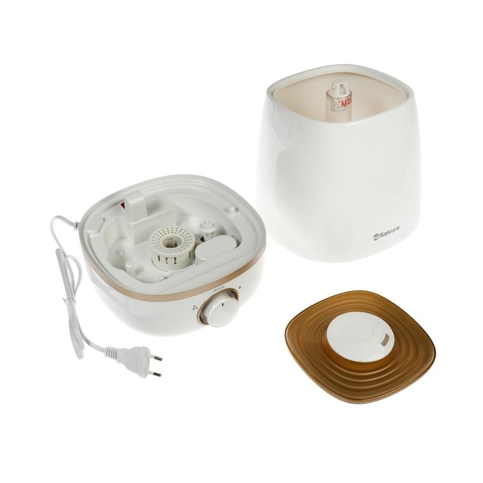 Увлажнитель воздуха Sakura SA-0608WG, ультразвуковой, 23 Вт, 4 л, 25 м2, ароматизация, белый