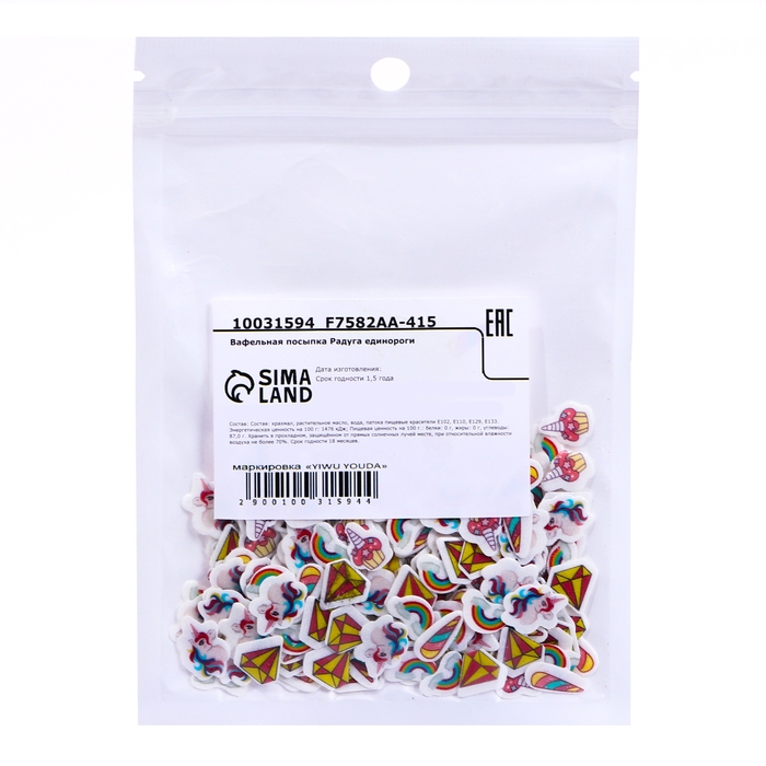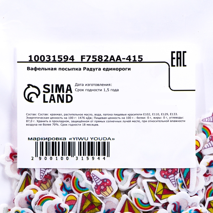 Вафельная посыпка "Радужный единорог", 6 г