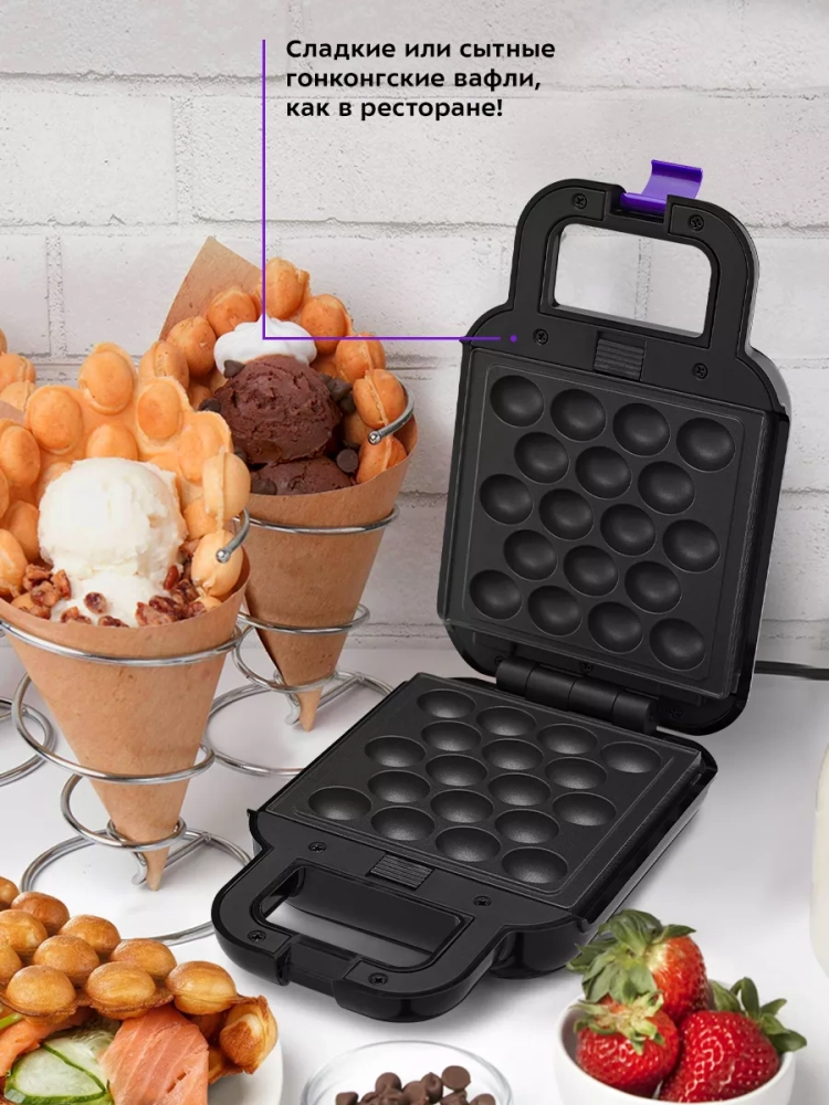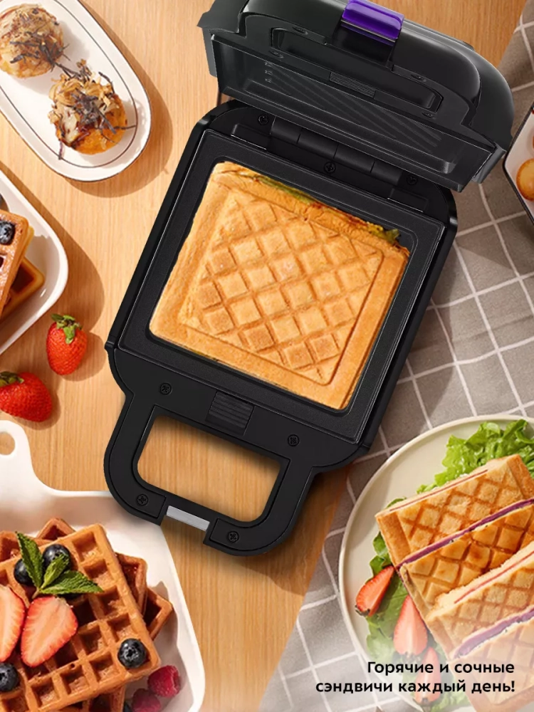 Вафельница рассчитана на приготовление 1 порции блюда. Компактный размер вафельницы позволяет экономить место на кухне.