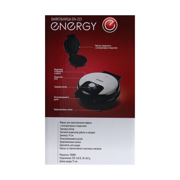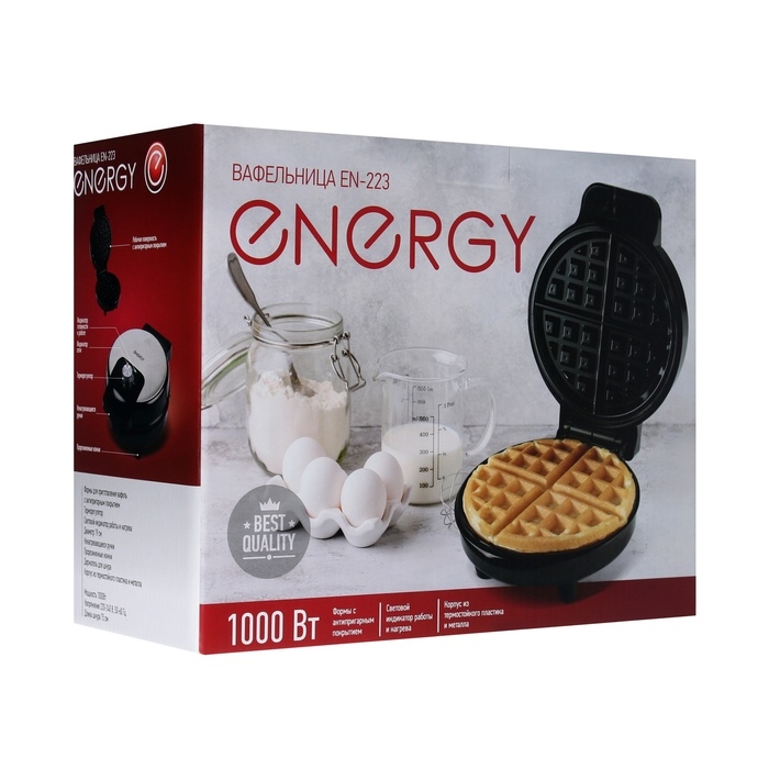 Вафельница электрическая ENERGY EN-223, 1000 Вт, венские вафли, антипригарное покрытие