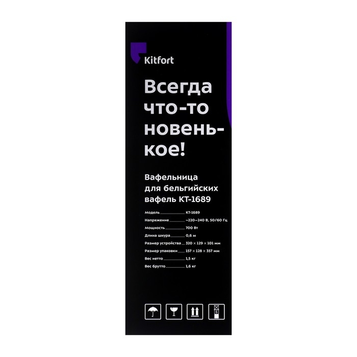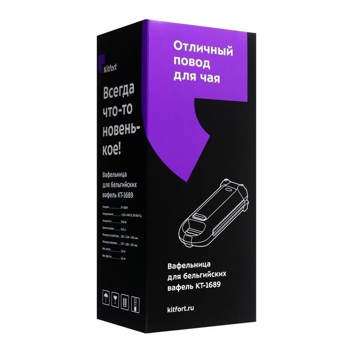 Вафельница электрическая Kitfort КТ-1689, 700 Вт, бельгийские, белая